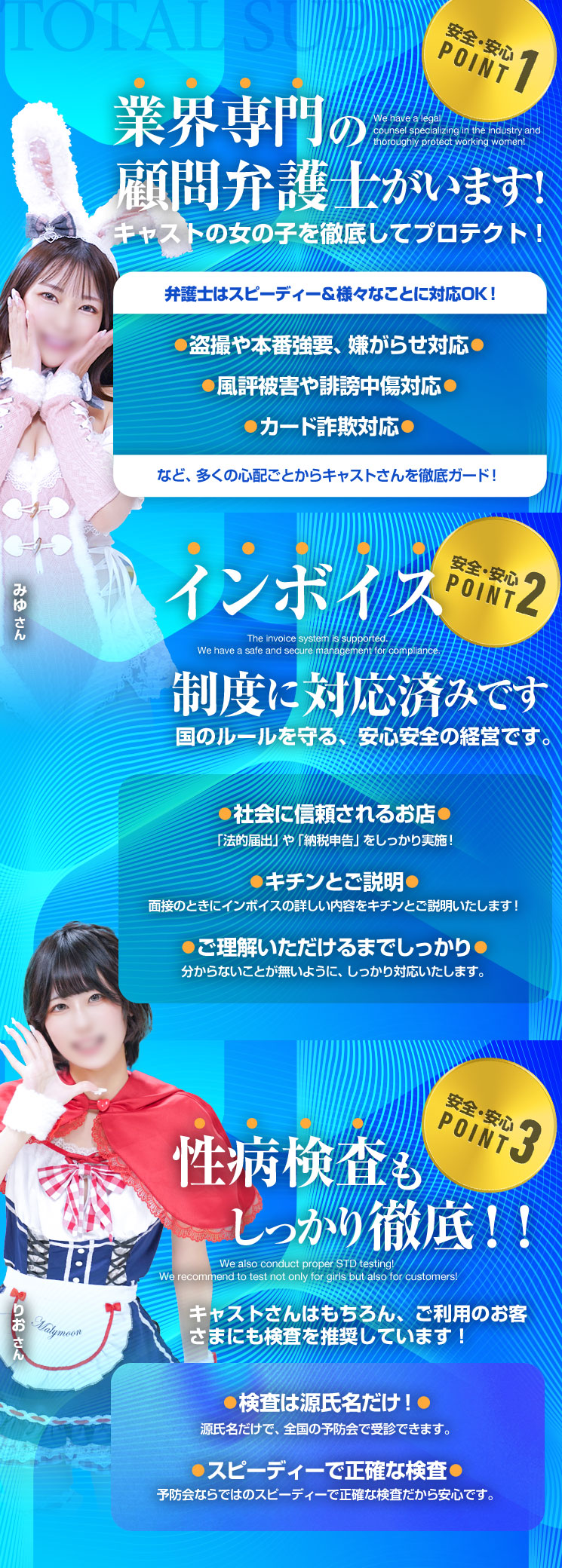 - 出稼ぎ!という概念がございません!全員在籍あつかいでいたれりつくせり!(地方出身の方でも東京の在籍店としてぜひ当店を足場にご活用ください)