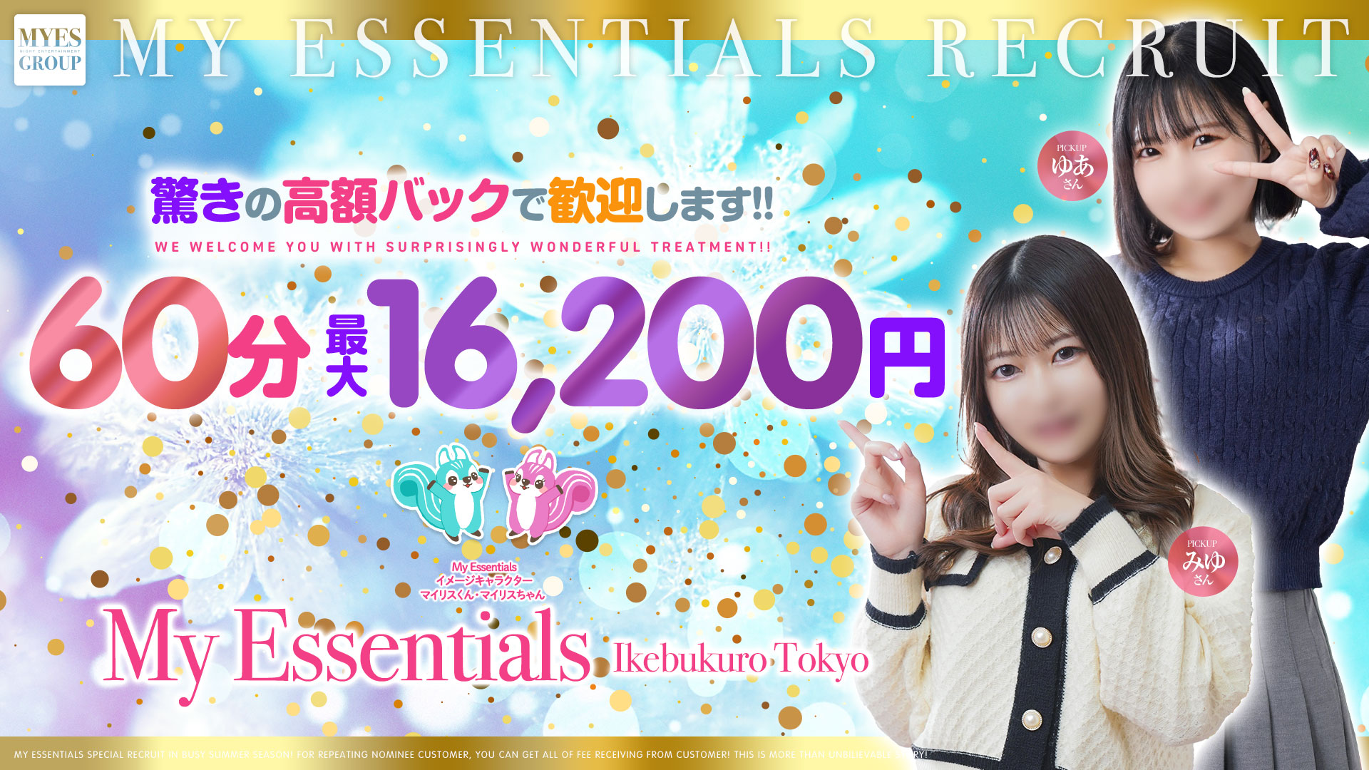 | 応募資格 | マイエッセンシャルズは 未経験の方・地方から上京の方も大歓迎です! 業界未経験者〜業界のプロの方までどんな方のお問い合わせもお待ちしております! |