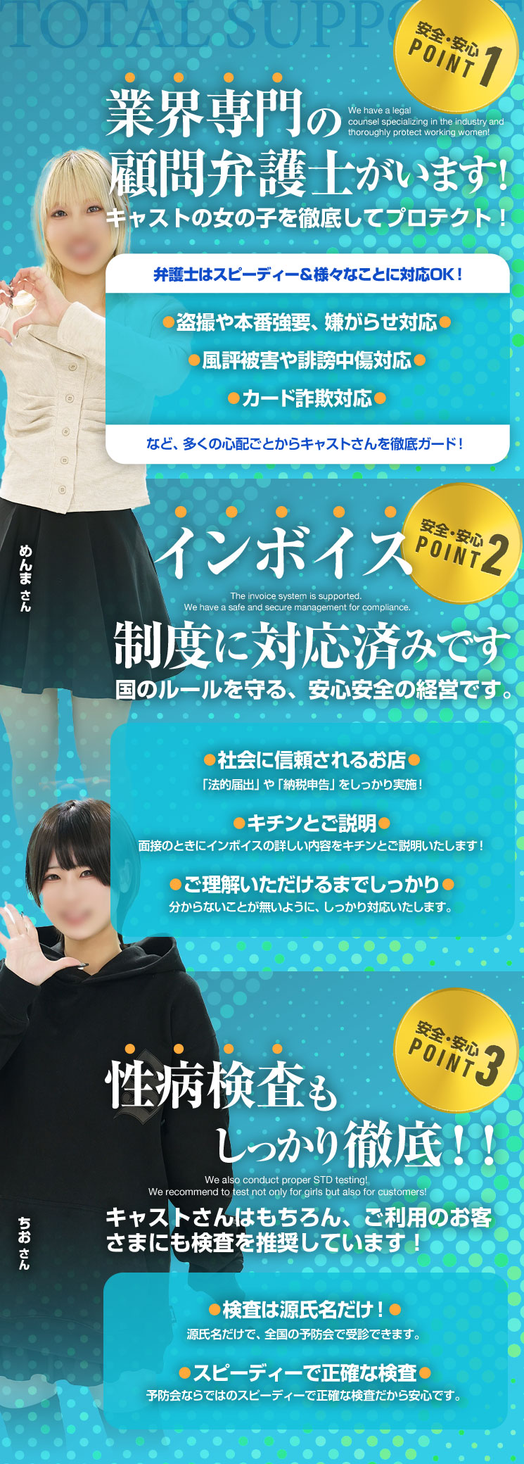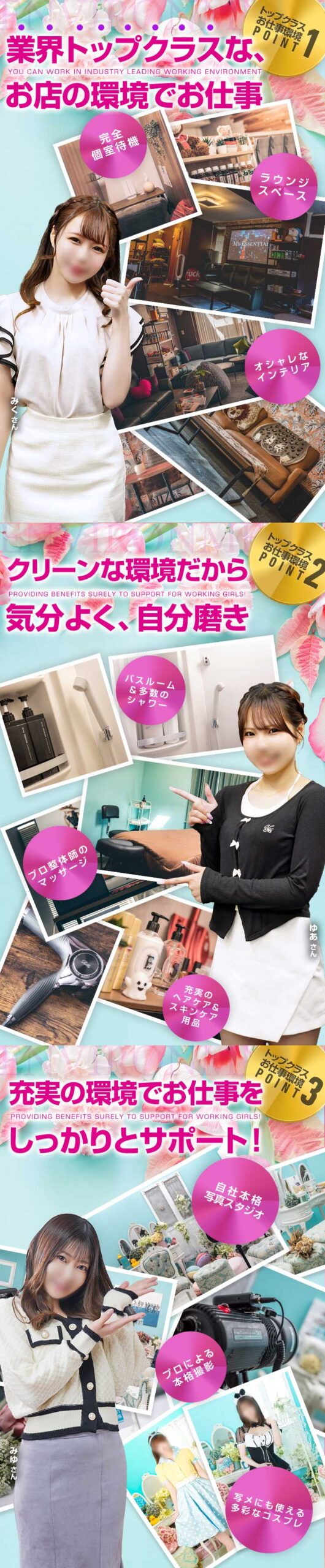 - 出稼ぎ!という概念がございません!全員在籍あつかいでいたれりつくせり!(地方出身の方でも東京の在籍店としてぜひ当店を足場にご活用ください)