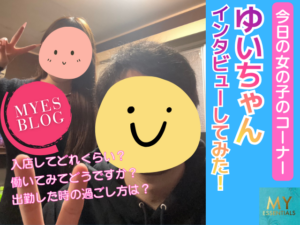 みくちゃん: 「お店のHPを見て『キレイだな〜』って思ったのがきっかけです。 待機室の写真とか雰囲気がすごく良さそうで、 ここなら安心して働けそうって直感で決めました!」